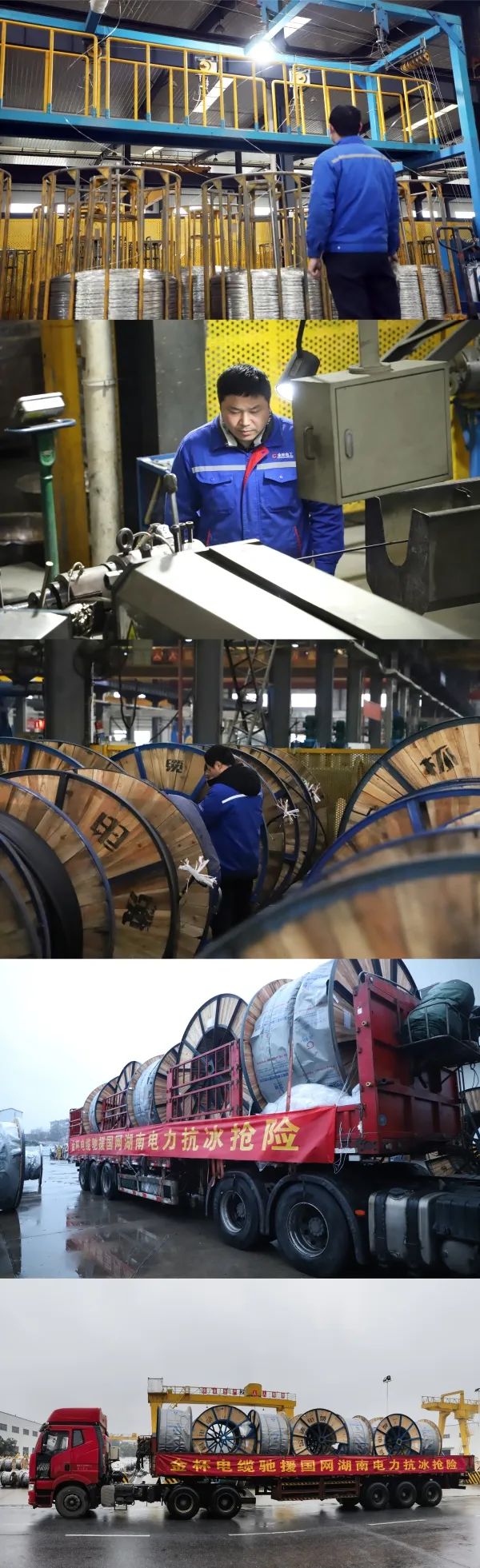 在抗冰抢险战场,全省上下一心,争分夺秒,确保用电清静 。2月20日,国网公司物资部组织召开新一轮抗冰保供发动聚会,确保做好第三轮雨雪冰冻天气应急物资包管事情 。2月21日,K1体育电缆接到国网紧迫订单,要求在5日内完成275公里的电缆生产及交货 。公司国网组第一时间向上级反响,起劲协调内部各部分,全力以赴,完成难题使命 。一样平常来说,这样一批电缆公司的生产及发货周期在10-15天左右,但为了应急抢险,不延伸“抗冰雪保供电”战争,内部一起亮绿灯,加急排产,确保准时交货 。车间其他订单统一安排,专门为本次使命开了一条生产线,从绝缘机组到护套机组,专线供货,工人们加班加点,确保生产线无休生产,又顶着风雪打包发车,最终乐成完成使命,2月24日起陆续供货,25日实现275公里电缆的完全交付,发往长沙、湘潭等地 。